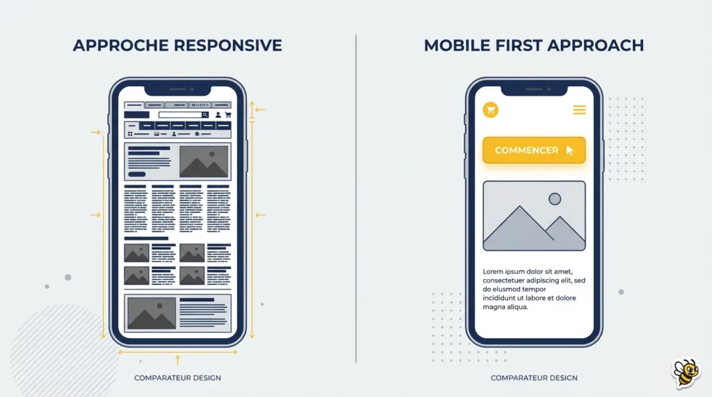 Beaucoup d’entreprises pensent être à jour parce que leur site est « responsive », c’est-à-dire qu’il s’adapte automatiquement à la taille de l’écran. C’est effectivement un premier pas indispensable. Cependant, il y a une différence fondamentale entre être responsive et adopter une vraie démarche mobile first.